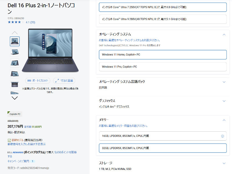 出典:Dell Technologies デルテクノロジースDell 16 Plus 2-in-1カスタマイズ例
